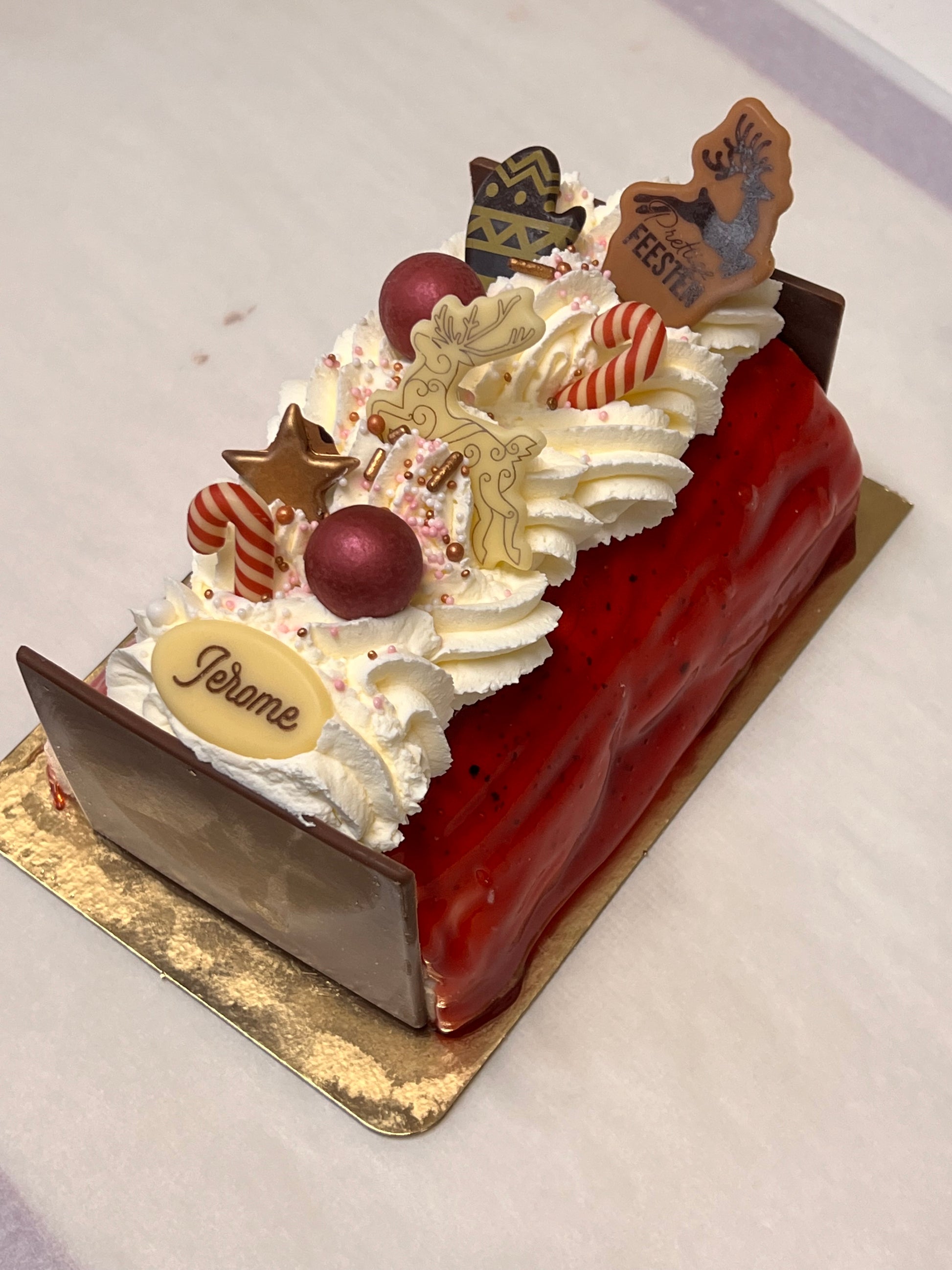 Verschillende soorten Buche ijsstronken met volledig eetbare Kerst-eindejaarsdecoratie.