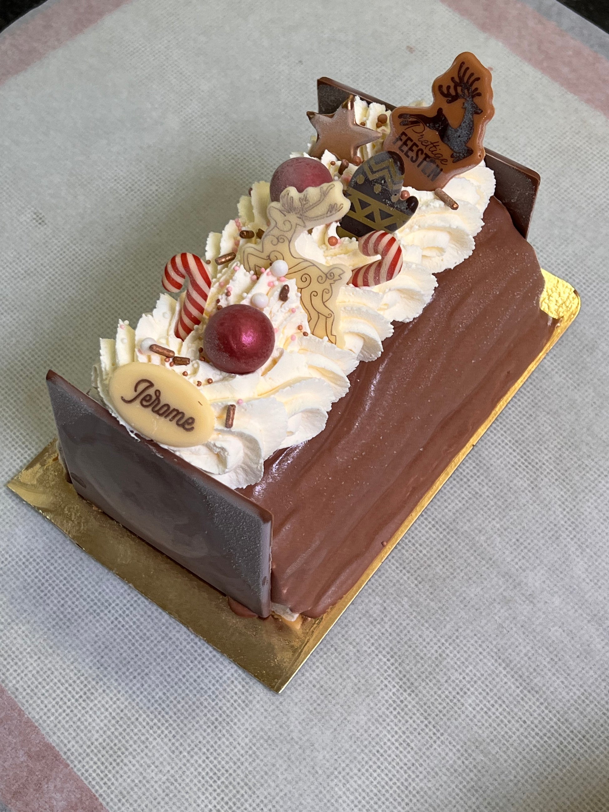 Verschillende soorten Buche ijsstronken met volledig eetbare Kerst-eindejaarsdecoratie.