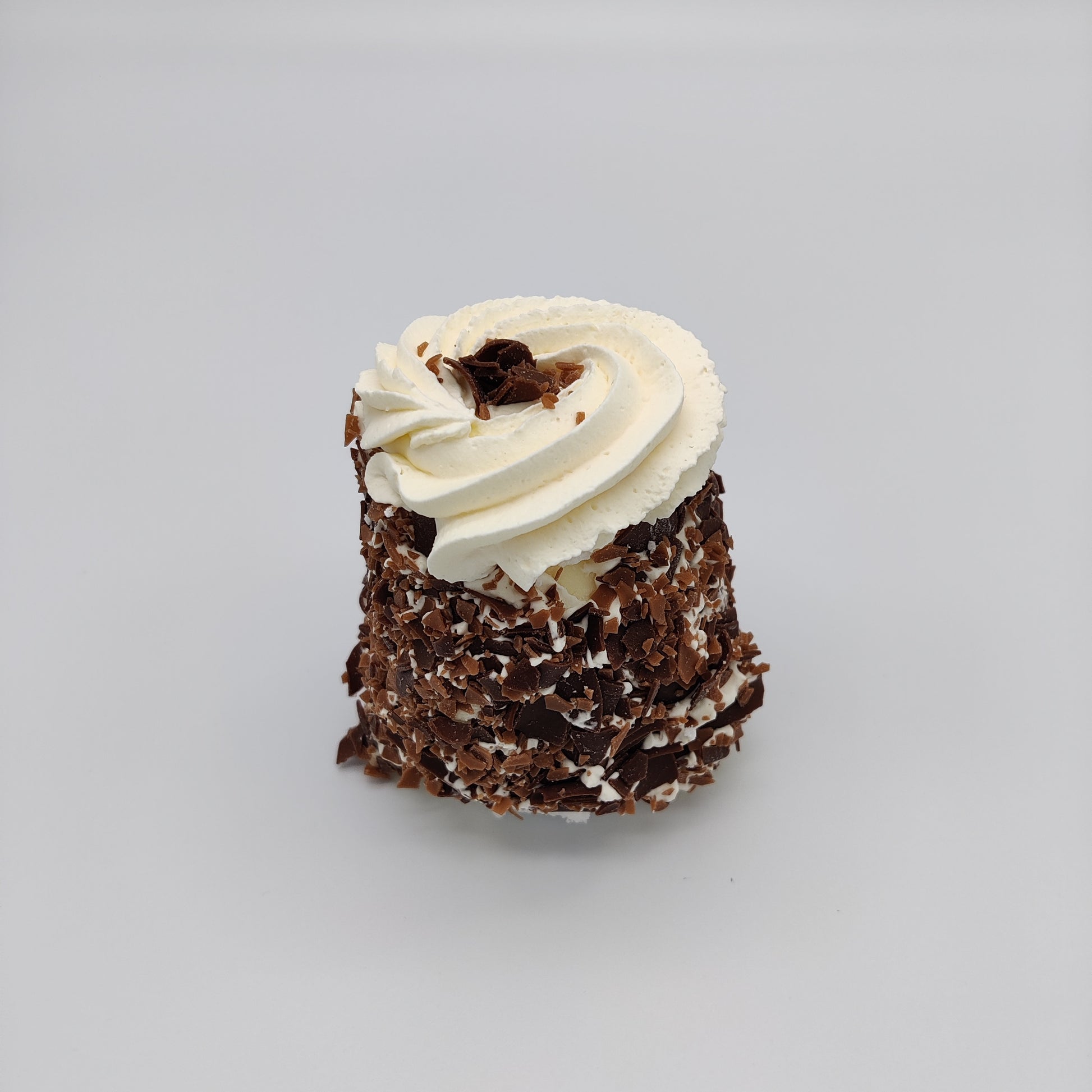 Vanille-ijs tussen twee merengue koekjes afgewerkt met melkchocoladeschilfers